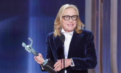 O ator Igor Angelkorte entrega o Prêmio do Público para o documentário Fabiana.